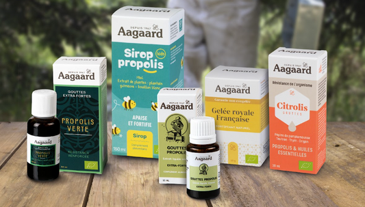 Avec un savoir-faire de plus de 40 ans, Aagaard c’est la garantie de consommer une propolis aux actifs standardisés et des produits de la ruche de qualité (miels, gelée royale, pollen).